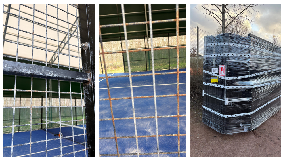 Der er desværre konstateret en fejl i gitrene på 'Padelbane 1 – overdækket', som har givet overfladerust. Vores leverandør kommer derfor og skifter gitrene på banen.